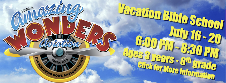 Amazing Wonders Aviation – VBS 2012 Dates: July 16 – July 20 Time: 6:00 PM – 8:30 PM Who: Children Ages 3 Years – 6th Grade Where: Woodland Baptist Church Biblical Content Covered For more information contact Brad, brad@woodlandonline.org